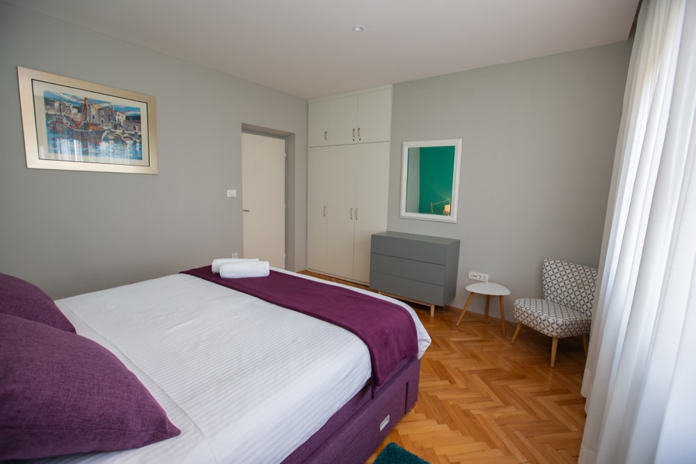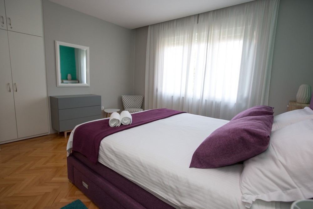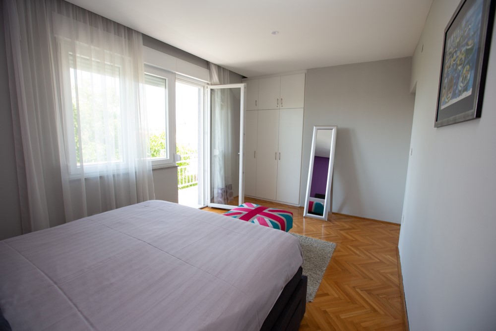Ovaj prostrani apartman nalazi se na 1. katu obiteljske kuće u samom centru Malinske, udaljen od plaže 200m Restorani i trgovine nalaze se u blizini apartmana. Apartman ima 80 m2 i može ugostiti 4-6 osoba, a sastoji se od dvije spavaće sobe, prostranog dnevnog boravka, kuhinje s blagovaonicom, kupaonice s kadom i posebnog WC-a i dva velika balkona s pogledom na more. Na raspolaganju su vam klima uređaj, TV-SAT. Kućni ljubimci nisu dopušteni. Cijena na upit.